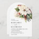 White Poinsettia Red Berry Christmas Arch Wedding Invitation
