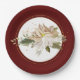 White Poinsettias & Faux Gold Glitter Leaves Paper Plate