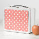 White polka crosses on peach metal lunch box