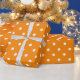 A wrapping paper built with a white polka dot pattern with a large distance between the dots on an orange background. Customise the orange background in an easy way.