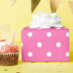 A wrapping paper built with a white polka dot pattern with a large distance between the dots on a pink background. Customise the pink background in an easy way.