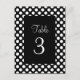 White polka dot pattern on black with room for a table number. You can customise and erase the word "Table" and centre the number.