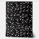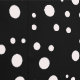 The white polka dots are large and evenly spaced, creating a playful contrast against the black background. The textured surface adds a vintage touch, reminiscent of classic polka dot designs from the past.