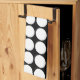 Bold white polka dots on a black background form a distinctive geometric pattern.