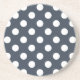 White polka dots on blue-grey coaster