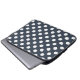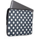 White polka dots on blue-grey laptop sleeve
