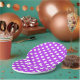White polka dots on bright purple paper plate