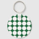 Rows of bold white polka dots on a green background form a classic graphic pattern.