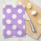 White polka dots on lilac tea towel