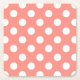 White polka dots on peach square paper coaster