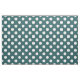 White polka dots on teal fabric