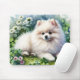 White Pomeranian Dog Watercolor Clover Field Mouse Pad