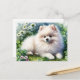 White Pomeranian Dog Watercolor Clover Field Postcard