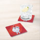 White Pomeranian in Santa Hat on Red Square Paper Coaster