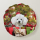 White miniature or toy poodle nestled among the Christmas presents dog lovers holiday throw pillow