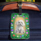 Cute little white poodle guarding your bag to make sure it gets safely back to you.