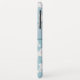 Cute White Poodles Pattern with Bows and Hearts on Delicate Swirl Pattern a Soft Blue Background Phone Case with Custom Name and Monogram.
