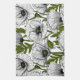 White poppies on white tea towel