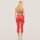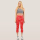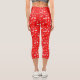 White Posy Print On Red Capri Leggings