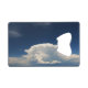 Photo of a white puffy cloud over a large river. The sky is very blue.