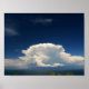 Photo of a white puffy cloud over a large river. The sky is very blue.