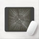 Painting of white spokes, strokes, from a centre, on a black background, printed on mousepads. Can be customised.