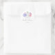 The sticker is made on wonderful paper and had no problem sticking to the bag that I purchased to put it on. I wanted to find a design that would be cute for the bride and groom and this one fit the bill as it has cute "bees" buzzing around and the wedding was taking place in a town called "Bee Cave". The packaging was great and protected the stickers. The website is easy to navigate and there are so many color choices. I had no problem finding a color that the bride was using on everything else selected. The design was adorable and there were many to choose from. You can make the figure as larger or smaller and you can place the photo and writting whereever you want to in the sticker. The printing is fabulous..better than expected.