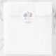 The sticker is made on wonderful paper and had no problem sticking to the bag that I purchased to put it on. I wanted to find a design that would be cute for the bride and groom and this one fit the bill as it has cute "bees" buzzing around and the wedding was taking place in a town called "Bee Cave". The packaging was great and protected the stickers. The website is easy to navigate and there are so many color choices. I had no problem finding a color that the bride was using on everything else selected. The design was adorable and there were many to choose from. You can make the figure as larger or smaller and you can place the photo and writting whereever you want to in the sticker. The printing is fabulous..better than expected.