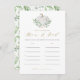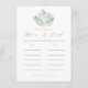 How old were the parents-to-be? Guess the age of the parents with this fun and easy baby shower game. It features watercolor illustrations of a white pumpkin, greenery and white roses with a matching greenery pattern for the back of the card. Personalise by adding names of the parents-to-be.
