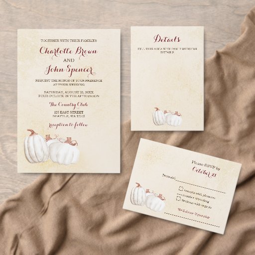 white pumpkins fall harvest wedding RSVP cards.Matching products also available.
