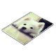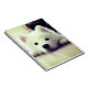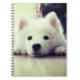 This notebook has a cute, white puppy pictured on it.