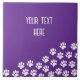 Cartoon style white dog paw print ceramic tiles. Purple background.