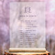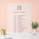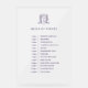 Wedding order of events signage in frosted white with purple coloured monogram. Heart crown crest entwined with leaves and berries monogram line art, personalise with your wedding time schedule. Uniquely designed and hand drawn monogram crown art by Sarah Trett for www.mylittleeden.com on Zazzle.