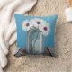 Pretty & rustic country Mason Jar pillow with white and purple daisies in the jar, sitting atop a rustic wood table, over a blue background. The mason jar has "Love" embossed on it in the illustration.