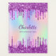 A rainbow, unicorn colored holographic background. Decorated with faux glitter drips in purple and pink. Personalize and add a name, purple colored letters and your text on the spine. Perfect for school, work, family, back to school. The name is written with a modern hand lettered style script.