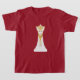 The t-shirt feels and looks great quality, a good thick cotton. It will be a little big for my son, but that means he will be able to wear it and not out grow it too soon. The print was as described on the order when personalised. True size, shape and colour T-shirt- thanks.