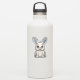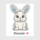 Vector illustration of a smiling white bunny with large, sweet eyes, long, blue ears, and a pink nose, in a cartoon style, on a black background. Suitable as a logo or mascot.