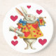 Round sandstone coaster with a vintage Alice in Wonderland image of the White Rabbit in full regalia amid whimsical red hearts. See matching plastic coaster, paper coaster and napkins. See the entire Wonderland Coaster collection in the FOOD/BEV | Coasters section.