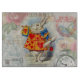 The Classic White Rabbit from Alice in Wonderland - Alice's Adventures in Wonderland features the white rabbit. This classic image of the white rabbit is from the original book, showing the rabbit blowing a horn, wearing a uniform of red hearts. The white rabbit is seen throughout the Alice in Wonderland story, from the rabbit hole, to the Mad Tea Party with the Mad Hatter. The alice in wonderland collage is a beautiful image for party invitations and gifts. Written by Lewis Caroll in 1865, Alice falls down the rabbit hole and is involved in a wonderland of fantasy.