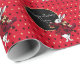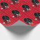Festive birthday greeting features vintage illustration of the White Rabbit in red tinted Queen of Hearts garb with black and gold customisable text circle and red / gold / black diamond background