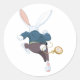 A white rabbit with its back turned running away. This design looks really effective on these Stickers