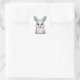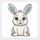 Vector illustration of a smiling white bunny with large, sweet eyes, long, blue ears, and a pink nose, in a cartoon style, on a black background. Suitable as a logo or mascot.