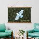 A white silhouette of a raven (Corvus corax) in flight superimposed on a green-toned fractal background closely resembling a conifer forest. Add your own text.