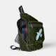 A white silhouette of a raven (Corvus corax) in flight superimposed on a green-toned fractal background closely resembling a conifer forest. Add your own text.