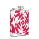 Well made flask, a little better than I had expected. Flask came in clear plastic box which gave it a nice presentation when I took it out of the zazzle packaging. Image is not printed on flask but on sticker. Don't know how this will hold up I haven't used it yet. This would make a Great gift! I plan to purchase more for friends! Cheers. I thought a little brighter than computer. Very crisp, writing wasn't