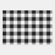 A buffalo plaid pattern holiday gift wrapping paper in white, red and charcoal grey.
