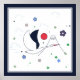White, Red and Dark-blue Abstract Flying Crane Poster