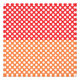 White polka dots on a half red half orange background.