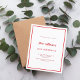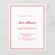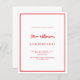 A modern, elegant and invitation. A white background decorated with a red frame. Personalise and add a name and details. Red text.