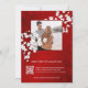 White cherry blossom branches and two butterflies with a red shimmering background. Japanese style wedding invitation. With a scannable qr code for your wedding website and a custom photo on the backside.